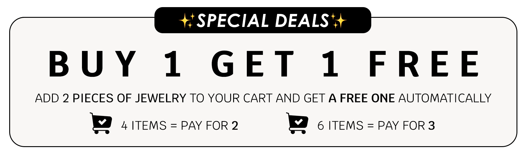 Every item on our website is included in our Buy One, Get One Free offer. Simply add two items to your cart and one will be automatically applied for free — no code required. Add more items and the offer adjusts automatically, giving you even more free pieces.